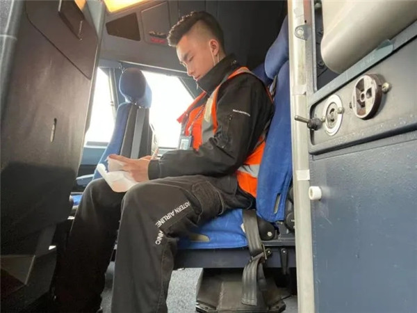 如愿进入东航后,林钰枭经过了入职培训、岗前培训、基本技能培训、OJT培训、初级维修培训等考核,在前期的培训结束后被分到了330小组🔖,作为一名勤务开始跟着师傅在班组内负责航前🌠、航后🛸、短停、周检🔠、排故等工作👬,在一次次的任务中,不断提高业务能力,工作也越来越得心应手。