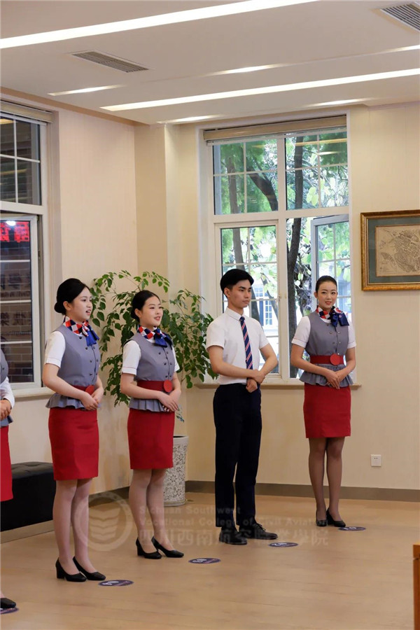 要想成为一名外航乘务员❎🤹🏼♀️,语言能力十分重要。面试官也在现场通过英语问答环节考核了大家的英语口语🔧。同学们借助平日的英语积累,流利地回答面试官的提问,尽全力展现出最优秀的自己。此外,同学们的获奖经历𓀖、在校活动经历、考取证书等都是加分项🏄🏼♀️。