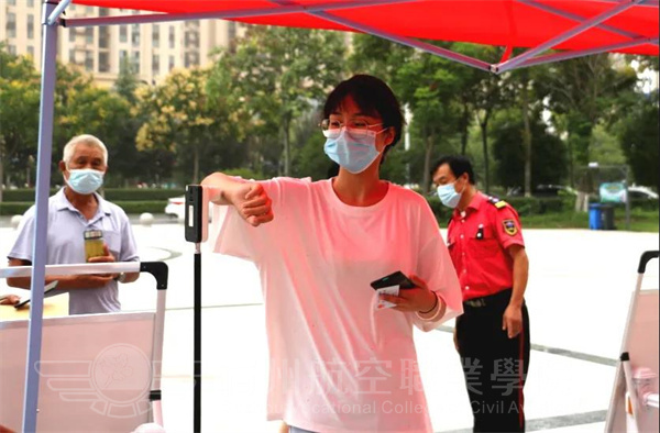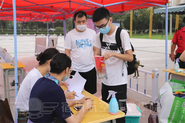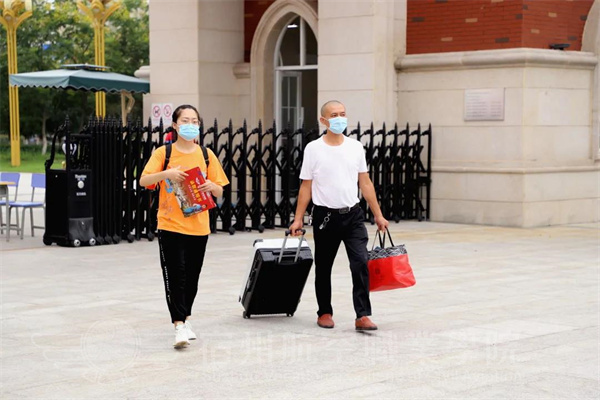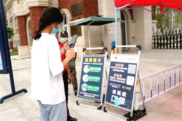 严控校园安全,为同学们的安全保驾护航。工作人员在校门口引导着萌新们进行行李消毒、测量体温、核实健康码、检查核酸检测报告等,符合要求者方能进入校园🚄。