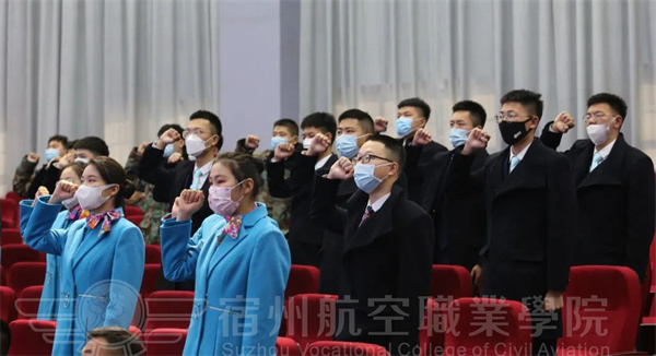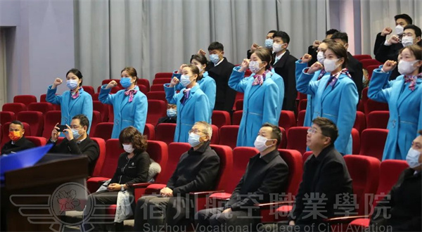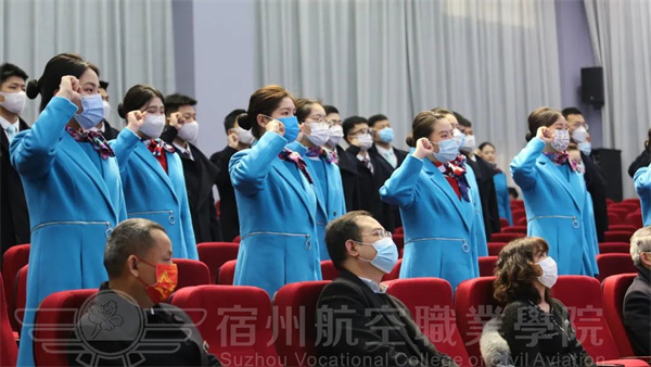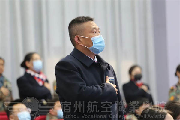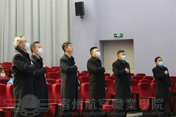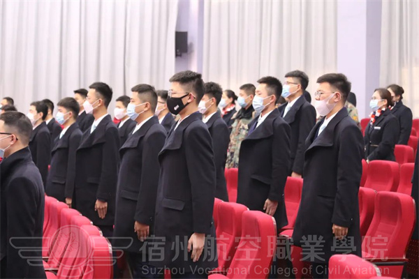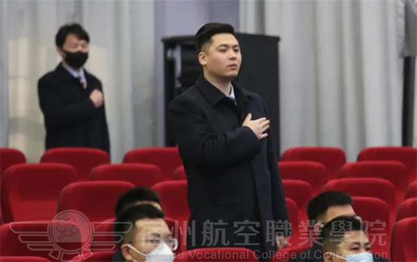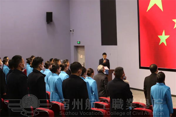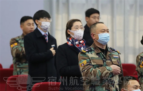 宿航院校学子全体肃立,注视国旗高唱国歌🤾🏽♀️。