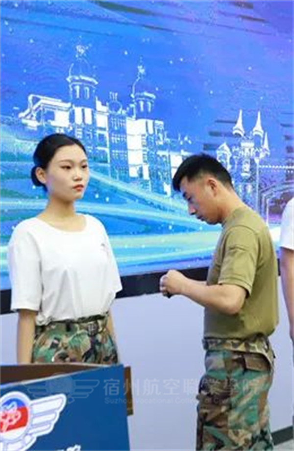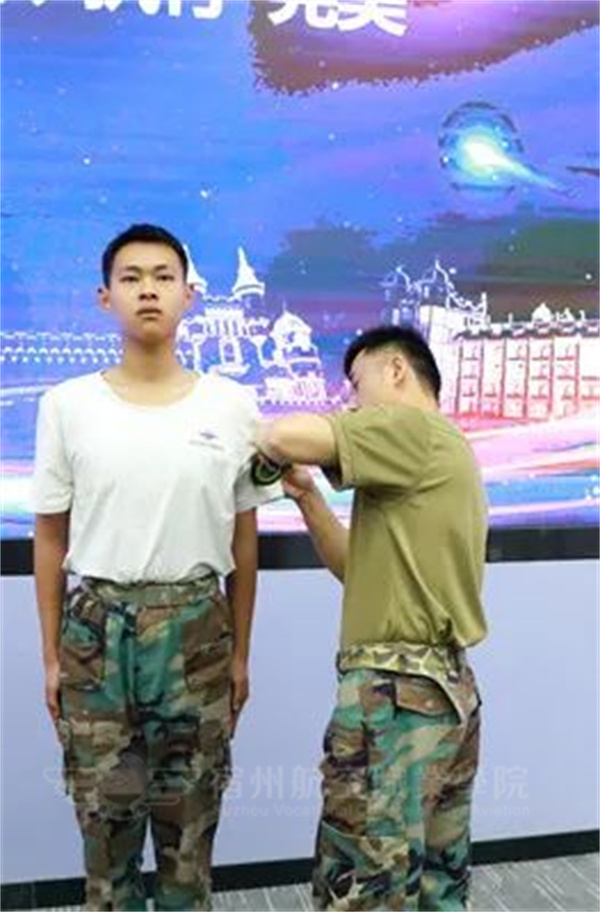 宿航院军体教官关振东任命王旭、孙密密、赵家福3名同学担任此次活动实习教官并授予臂章🏊🏿♀️。