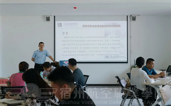 8月6号上午✧,宿航院副院长陈志泉带领全体教职工学习了《国防教育法规及院校军事教学大纲》,并对《国防教育法》的结构及其目的意义和作用、学校国防教育任务和内容🗡、国防教育的保障等做了详细的解读,为开设好军事课程,抓好军事化标准化管理🫄🏻,培养国家人才指明方向。