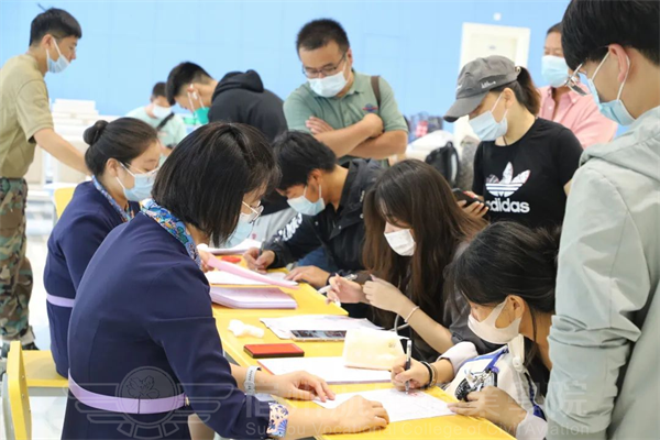 工作人员为返校学生📋,逐一测量体温、行李消毒👵🏽🙍🏿,查看行程码🎧、健康码及核酸检测结果,第一时间安排学生🔩,在入校前进行核酸检测,并在入校后进行三天三检🎷,做好细节工作,保障整个报到流程有条不紊、井然有序。