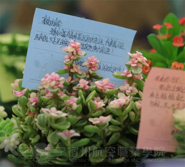 一盆盆青翠欲滴的绿植,一朵朵娇艳的花朵,一句句发自肺腑的寄语,那是对萌新们最美的期待 ,每一盆不同的盆栽,寓意着每个萌新都是独一无二的,希望TA在宿航大家庭里茁壮成长🪚🚬,不断完善自我 创造生活。
