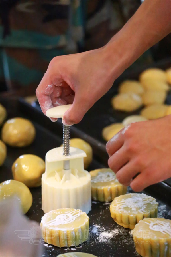 宿航学子们尝试趣味十足的“自家制”,一起亲密互动,互相切磋。揉制面团🦸🏿、包入馅料🦻🏻、按压成型……一个个宿航定制月饼新鲜出炉。