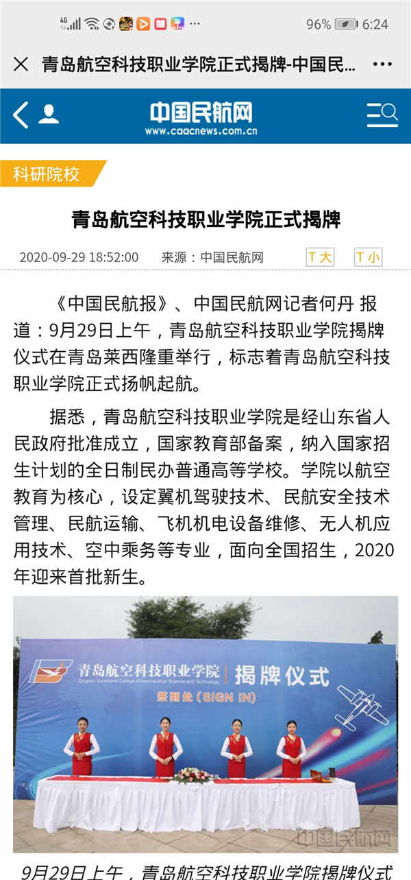 新华社⏮、人民网🧝🏿♀️🤾🏿、光明日报、中国民航网:青岛航空科技职业学院揭牌