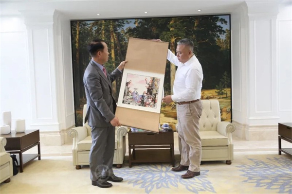 在仪式前🦼,大韩民国驻成都总领事馆总领事李光镐一行参观了西航人文经典校园、一流实训中心等🚸,近距离感受实训课堂。大韩民国驻成都总领事馆总领事李光镐与泛美集团董事局主席魏全斌进行了座谈👨🚒,双方就泛美教育国际化办学理念、校企合作的育人模式等展开交流。