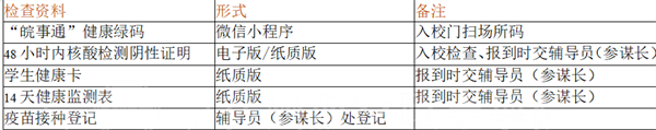 ※不符合返校条件或因其他特殊情况不能按时返校的同学,需提前向辅导员(参谋长)报备并办理请假手续。