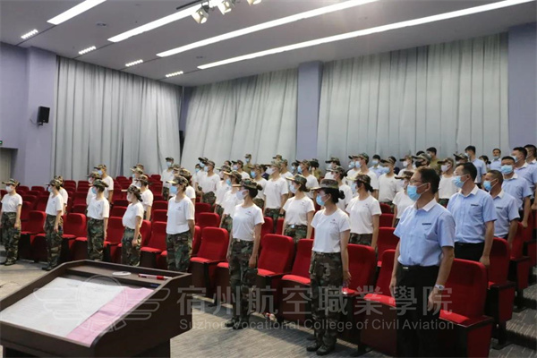 大会第八项,新生宣誓:传承善与美德,传递爱与快乐,认真参加军事及职业素养集中训练,刻苦磨砺意志😾,完善自我、创造生活,努力成为标准的军人🧏♂️、高度职业化的民航员工、现代的绅士淑女🪤。