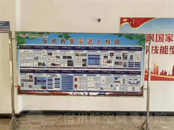 学生工作处(团委)在校园开展“反邪教警示教育进校园”活动宣传。在宿舍楼大厅、教学楼大厅等张贴反邪教宣传海报👨🏻🦼➡️,并在实训中心的LED大屏幕循环播放警示教育宣传片🏄🏼♀️,使学生认识到邪教伪善面目,呼吁学生自觉抵制邪教,相信科学👳🏿♂️,树立正确的人生观。