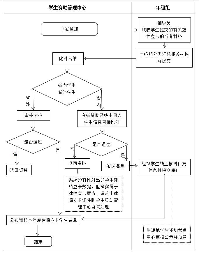 | 2.1 | 在收取学生的与建档立卡相关材料是,要区分是省内学生还是省外学生,分类整理材料交给年级组。 | 年级组 |