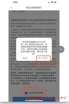 2.点击考试按钮,阅读并同意考生承诺后进行打钩,点击“开始考试”;
