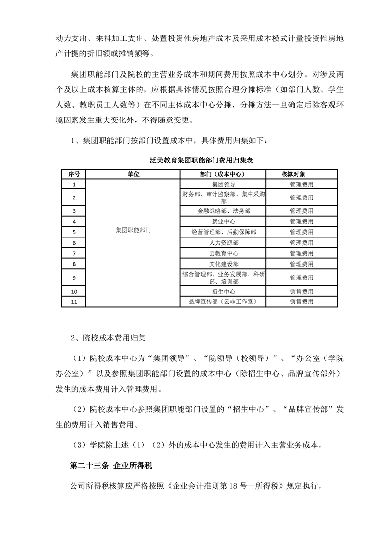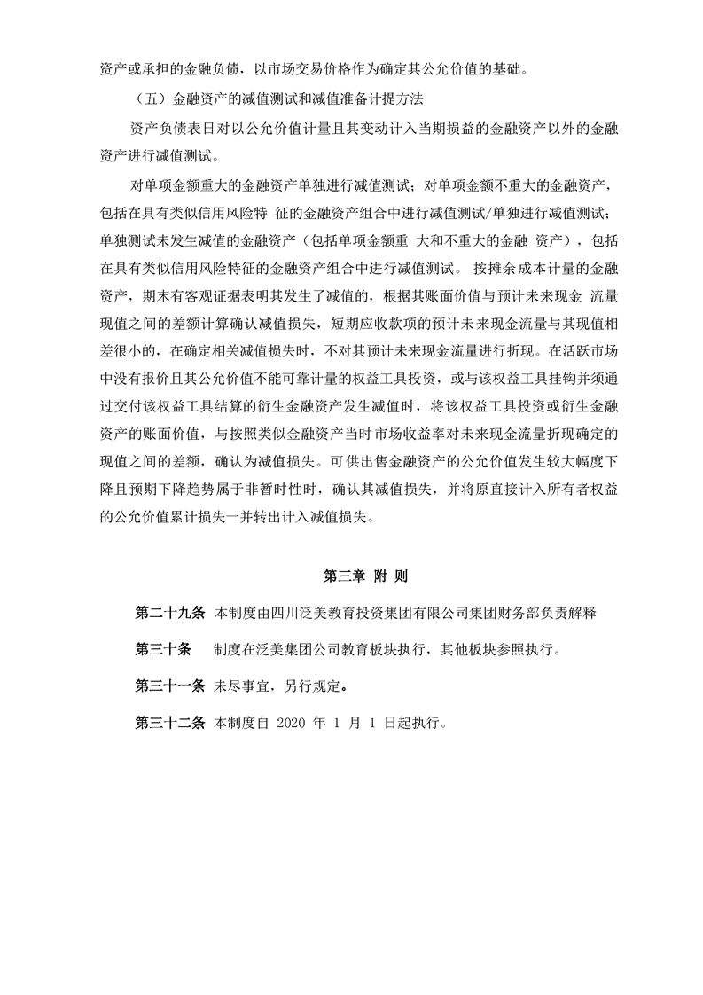 关于补充修订《四川泛美教育投资集团有限责任公司会计制度》的通知
