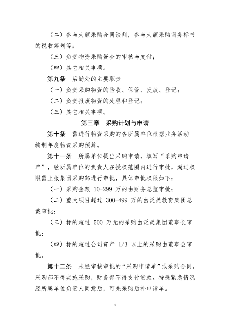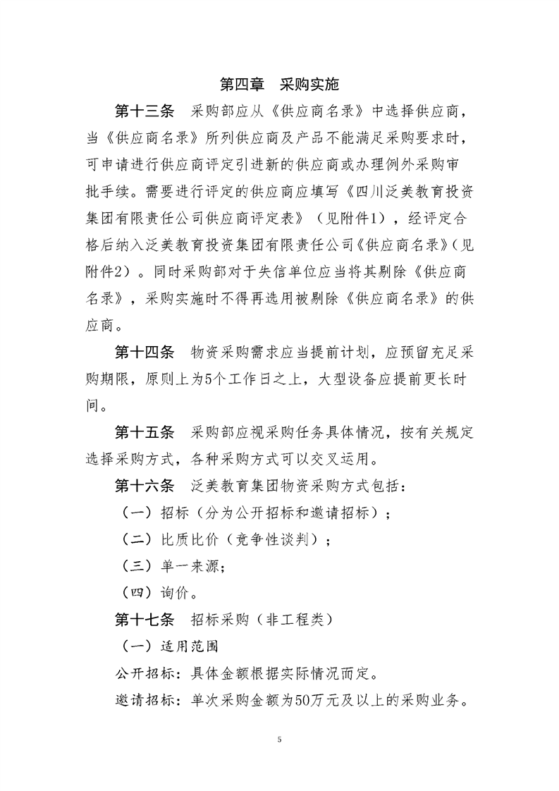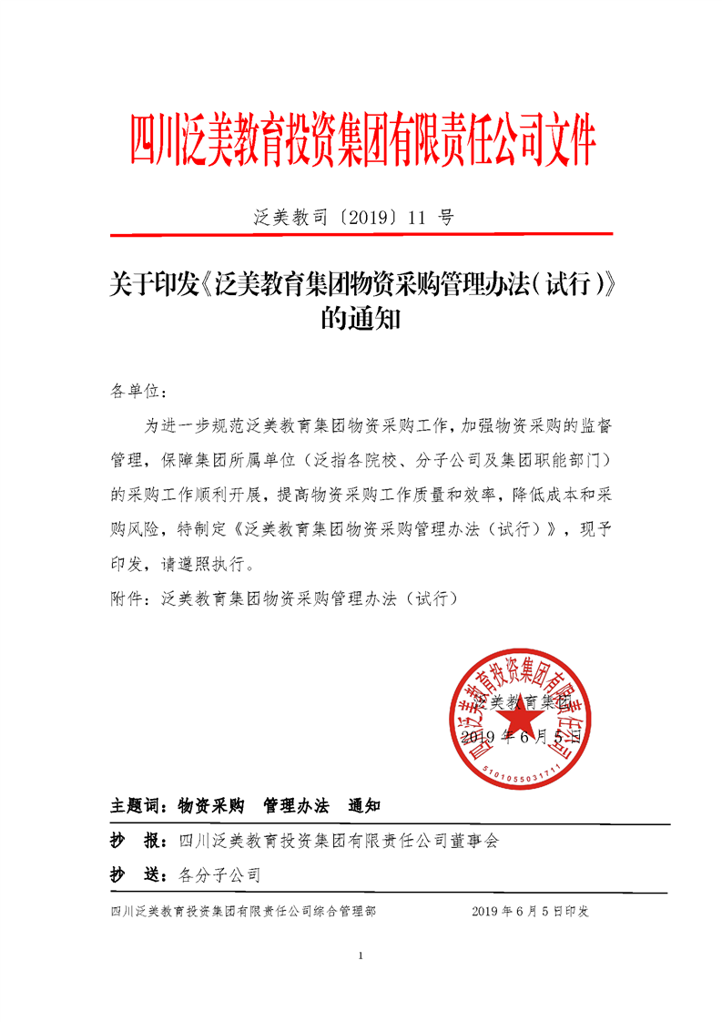 关于印发《四川泛美教育投资集团物资采购管理制度(修订)》的通知