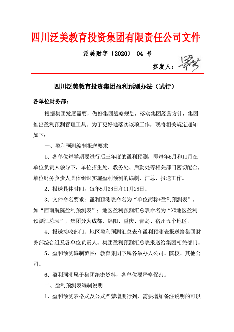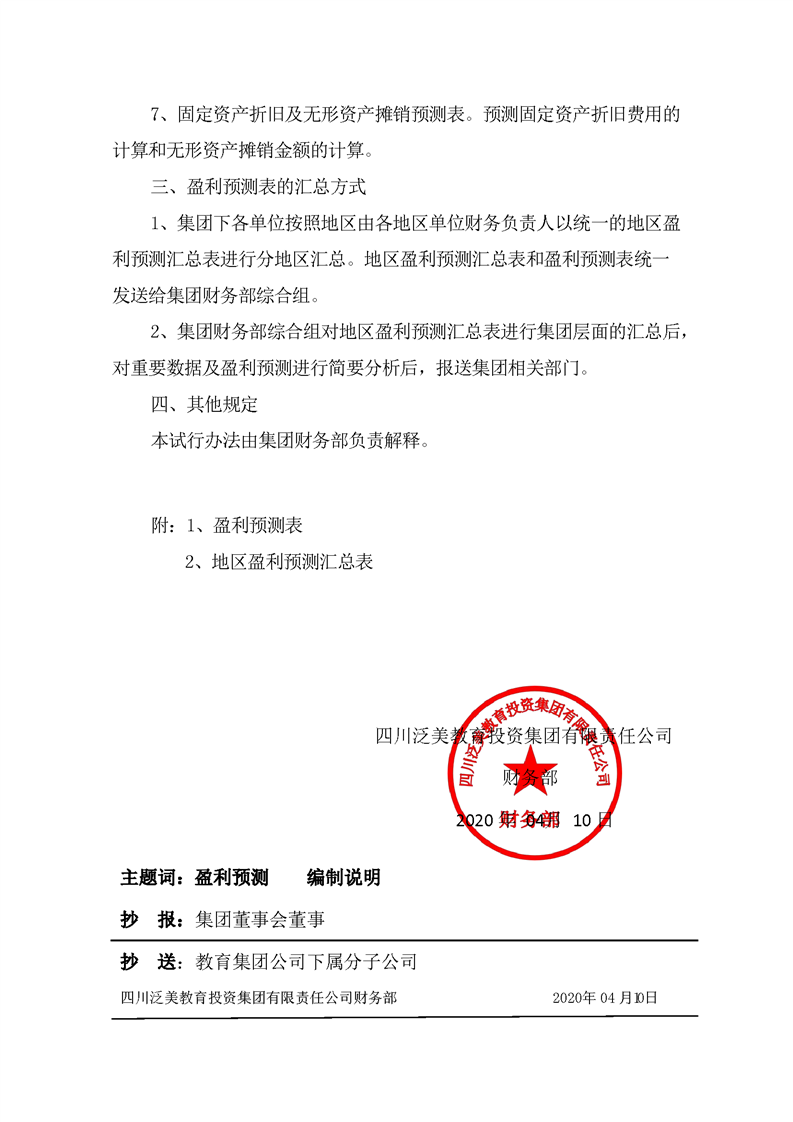 四川泛美教育投资集团关于2021年度财务决算有关事项的通知