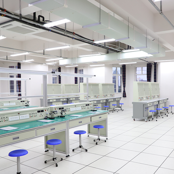 标准线路施工实训室🧑🤝🧑。标准线路施工及电子元器件组装实训室此间实训室占地面积约150平(321)🚨🪨、122平(320) 共两间🖋,设施设备价值106124元,分别可容纳45名学生进行教学实训,用于《航空电气标准线路施工》、《电气标准施工与静电防护》等课程的专业基础实训🧑🏿🎨。