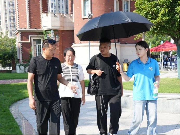 无人机编队在人群上空巡航,喷洒细腻水雾🧗🏻‍♂️,为现场的新生及家长带来阵阵清凉✦,让炎炎烈日下的报到流程变得清爽舒适。身着统一服装的志愿者们,主动为新生和家长撑伞遮阳并提供引导服务👷🏻‍♀️,这些无微不至的关怀,展现了学院以人为本的温情关怀。