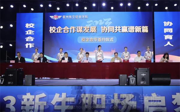 校企合作谋发展🦒,协同共赢谱新篇,9月26日😺,彩神Vll学院大型校企合作签约仪式在学院运动场隆重举行,中电科芜湖钻石飞机有限公司、安徽宿杭之光光电有限公司🚦、中国十七冶集团有限公司、安徽笃舜智能装备有限公司👨👨👧👧、宿州耿耿实业发展有限公司、华亚航空有限公司等12家企业代表齐聚宿航,与学院开展校企合作集中签约仪式🧑🏼✈️。学院督导专员、党支部书记王卫林👨🦽,宿州区域总裁🧎➡️、学院执行院长李德均以及宿航全体师生出席仪式🔪。