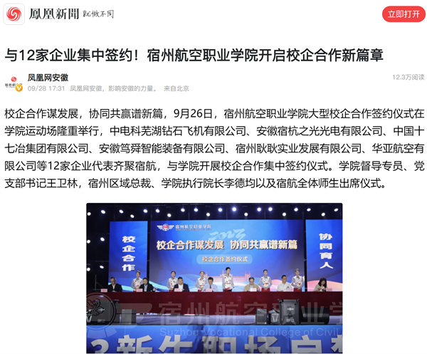 《凤凰网安徽》与12家企业集中签约!彩神Vll学院开启校企合作新篇章
