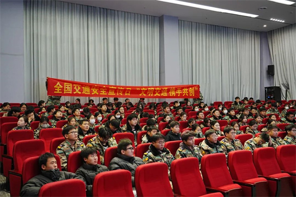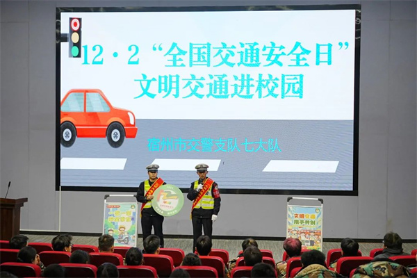 彩神Vll学院联合宿州市公安局交警七大队,开展文明交通进校园活动,将交通安全送到同学们身边。