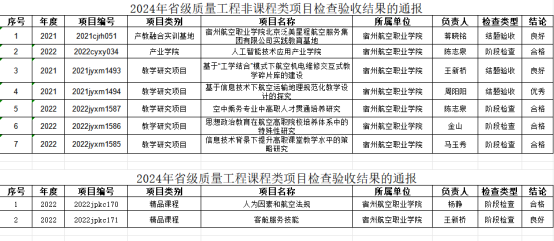 其他6项省级质量工程项目的阶段检查均已合格,希望阶段检查项目合格的主持人👨🏻⚕️,尽快开展项目研究,确保顺利结项。