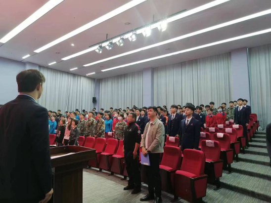 大会第一项⌚️,全体人员起立奏唱《中华人民共和国国歌》。