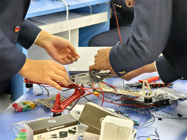 无人机赛区同样精彩纷呈。无人机组装与调试赛项的选手们争分夺秒地完成无人机装配和系统调试;无人机拍摄与剪辑赛场,选手们操控无人机完成指定拍摄任务后,立即投入视频剪辑工作。