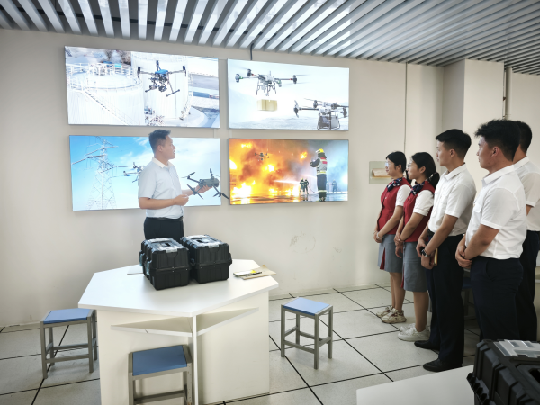 随后大家一起参观了无人机实训室,无人机专业老师李进祥介绍了近年无人机技术快速发展的情况,剖析了无人机技术在应急救援、环境监测☎、智慧农业等关键领域的广泛应用。参观之后,大家兴致勃勃地观摩无人机飞行表演。小小的无人机宛如空中轻灵的舞者,时而悬停空中,时而贴地飞行🧗🏿♂️,精彩的表演引来阵阵掌声。