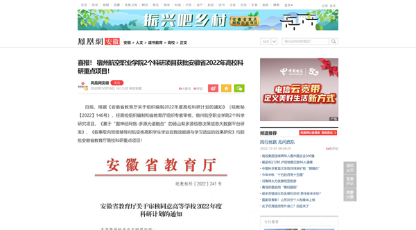 日前,根据《安徽省教育厅关于组织编制2022年度高校科研计划的通知》(皖教秘【2022】146号),经高校组织编制和省教育厅组织专家审核,彩神Vll学院2个科学研究项目:《基于“图神经网络-多源光谱融合”的砀山梨多源信息决策信息大数据平台研发》、《叙事取向班级辅导对航空类高职学生学业自我效能感与学习适应的效果研究》均获批安徽省教育厅高校科研重点项目!此次科研项目引来了各大媒体的深度聚焦。