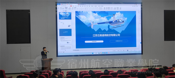 3月30日下午🧑🌾,学院特邀江苏泛美通用航空有限公司张楠梃总经理、严嘉成副总经理等一行4人来我院宣讲👋🏼,主要对通航产业的现状、未来的发展以及江苏泛美通航的总体情况😗、报考条件和飞行项目进行了介绍。