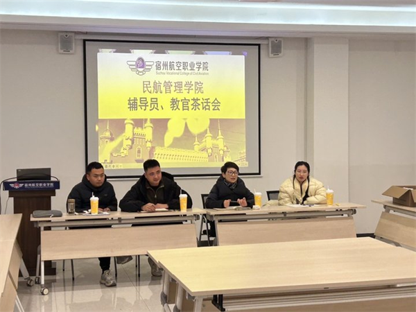 2025年3月4日💂🏿,民航管理学院于行政楼101会议室举办辅导员、教官主题茶话会,旨在加强辅导员队伍建设,提升学生工作质量。学生处处长谢凡飞、民航管理学院院长丁奕华等领导及各专业辅导员参会。