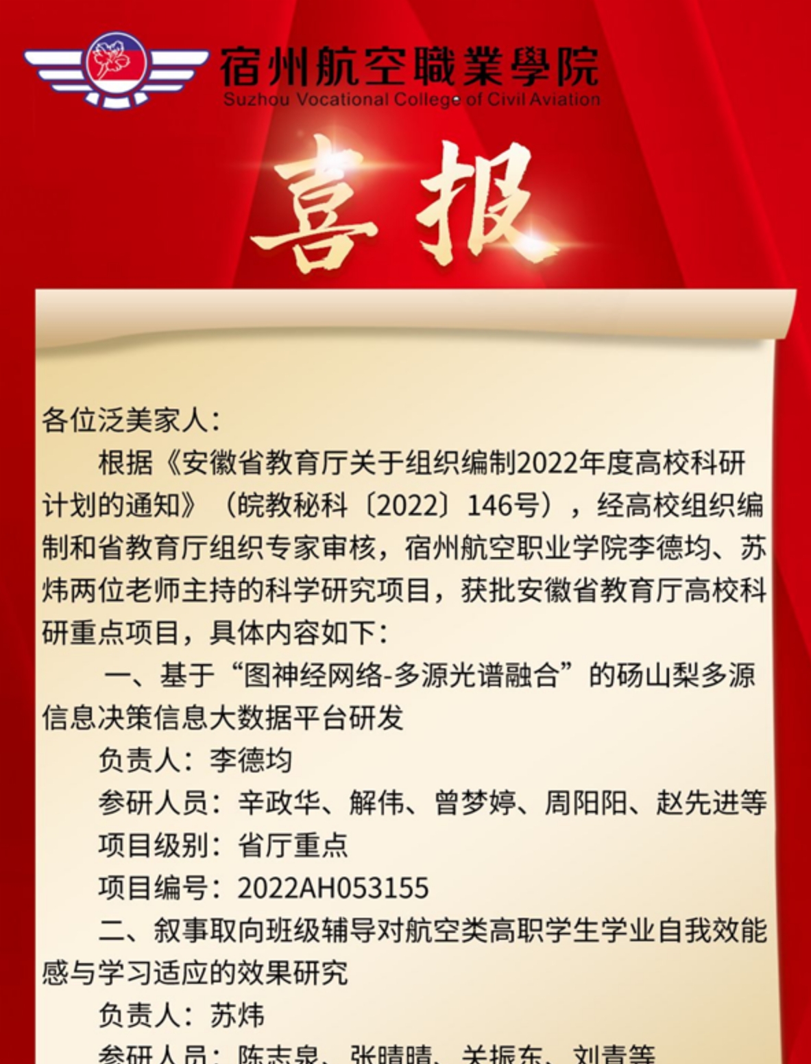喜报——彩神Vll学院李德均🏭、苏炜两位老师主持的科学研究项目,获批安徽省教育厅高校科研重点项目