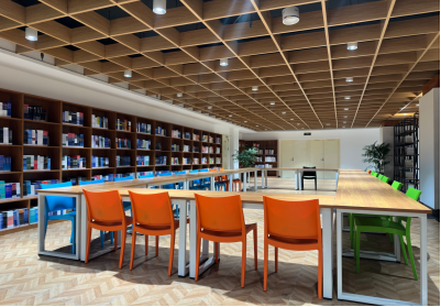 图书馆是一座英伦风格的建筑✤,馆外绿树成荫,美轮美奂;馆内环境优雅🩼,功能完善🫗。内设自由阅读、休闲娱乐🏋🏼♂️、深度自习💇、开放会议等区域,是教职工及学生享受阅读、放松身心🧑🏿🎨、交流娱乐的优良场所。