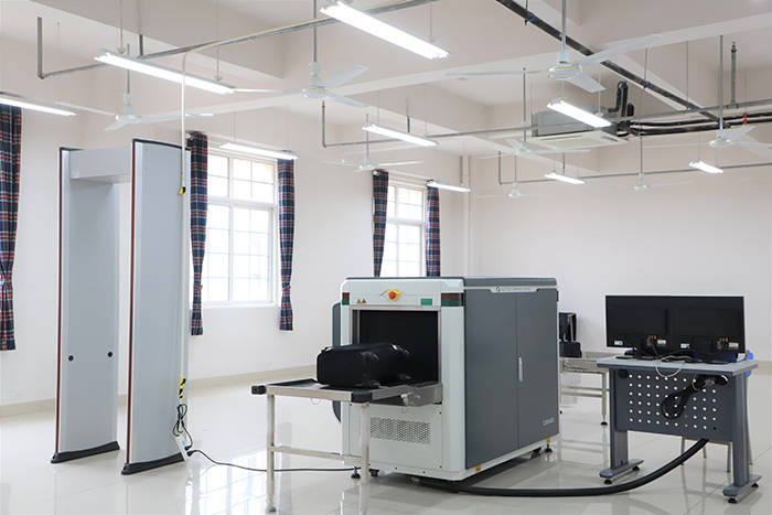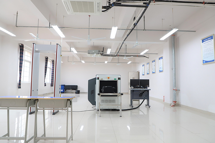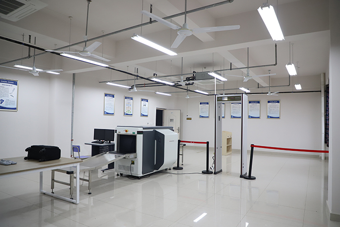 它完全依照民航机场安检通道规格设计,可以为学生提供安检验证、引导前传、人身检查、X射线机操作、开箱包等岗位技能实训。根据民航安检岗位任职要求,推行“双证书”制度,鼓励学生在校期间考取五级安检证。