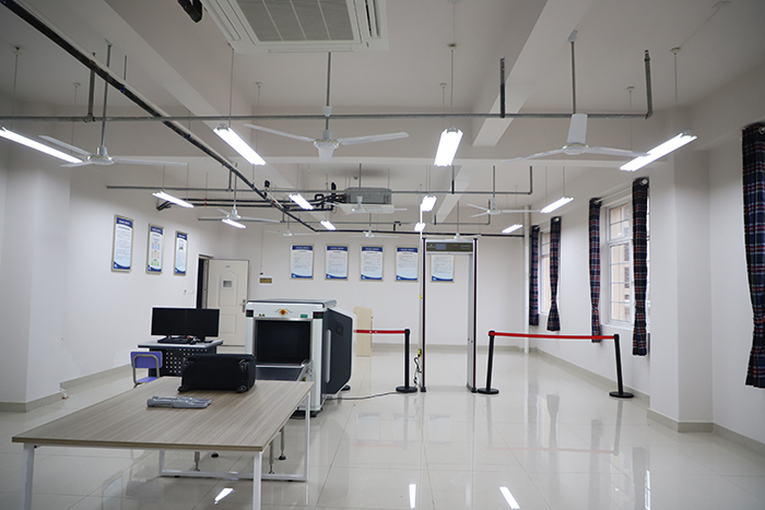 安全检查实训室。民航安全检查实训室占地面积为122平方米,设施设备价值395300元🚤,共可容纳40名学生进行教学实训,适用于安检专业和空中乘务专业。