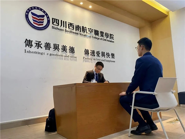 在面试过程中,面试官从同学们对本公司的了解、就业意愿🧙🏻、临场应变能力和抗压能力等做了全方面的考核🍎。同学们一一沉稳作答,表现出自己坚定的就业意愿𓀎。 作为制造航空零件及各种机电设备的专业公司,成都联科航空技术公司的面试吸引了不少飞机机电设备维修、飞机电子设备维修等专业的西航学子前来参加。