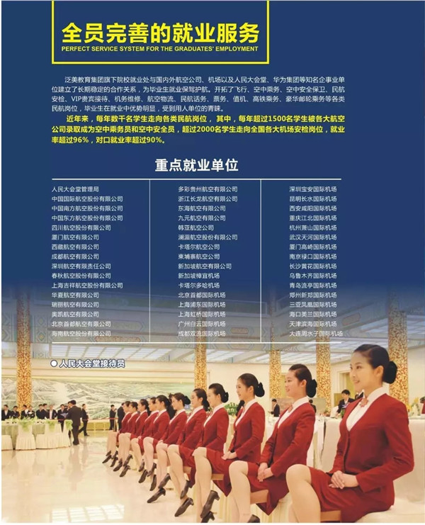 每年😊👩🏭,西航都会接待数百家民航用人单位,组织近200场校园招聘🧜,为西航学子提供大量的就业面试机会🗜。目前🙎🏿♀️,学院已经与国内外数百家民航单位以及人民大会堂、华为集团等知名企事业单位建立了长期稳定的合作关系,开辟了空中乘务、空中安全保卫、国际空乘🧘🏼、人民大会堂安检🚦、高级会议接待🍅、民航安检🥇、VIP贵宾接待🏈🌍,飞机电子设备维修🫒、民航话务、票务、航空物流等多种民航岗位⚠,让每一位学子都能顺利走上工作岗位✷,成就自己精彩人生🦹♀️。