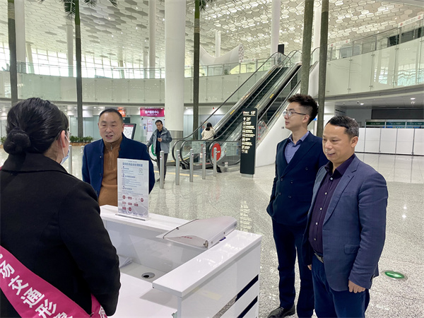 23日中午,陈志泉一行到达深圳宝安机场后🧍‍♂️👛,在深圳项目部余威总经理等人的陪同下,第一时间到GTC交通中心以及贵宾厅,探望问候在岗实习的同学们,了解岗位情况🙋🏼,学生在岗状态、实践收获等。陈志泉鼓励同学们,要端正工学交替态度𓀆,注意职业形象和服务态度,熟悉岗位具体操作流程等♎️。