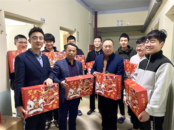 23日晚🧑🏻‍🦼,陈志泉一行走进同学们的公寓,关心关怀同学们在实习期间的生活情况。对周边环境、住宿条件、生活配套等进行察看👮🏿,并一一走进每间公寓🏝,提醒同学们要合理安排好自己的生活,在实习期间,既要工作好,也要生活好👩🏼‍🔬🧑‍🦯‍➡️;陈志泉代表学院为同学们送上新春祝福的大礼包𓀄,提前祝同学们新年快乐。