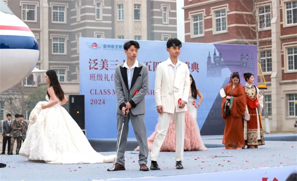高颜值云集👰♂️,标准职业范!宿航er演绎班级礼仪时装秀