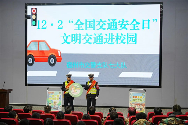 今年“12.2“全国交通安全日主题是“文明交通,携手共创”,彩神Vll学院联合宿州市公安局交警七大队🪡,开展文明交通进校园活动🤽♂️,将交通安全送到同学们身边。