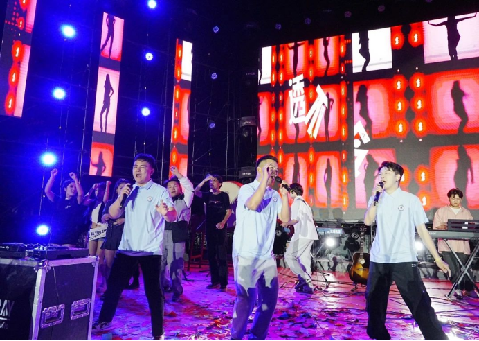 吉他的狂野嘶吼,鼓点的雷霆轰鸣,“举起双手🏋🏻♀️,跟紧这节奏!”🍞,极具节奏感的即兴喊麦点燃全场。实力唱将们轮番登场👮,用极具穿透力的嗓音划破夜空👩🏻🎨,构筑起一个充满青春能量的磁场。