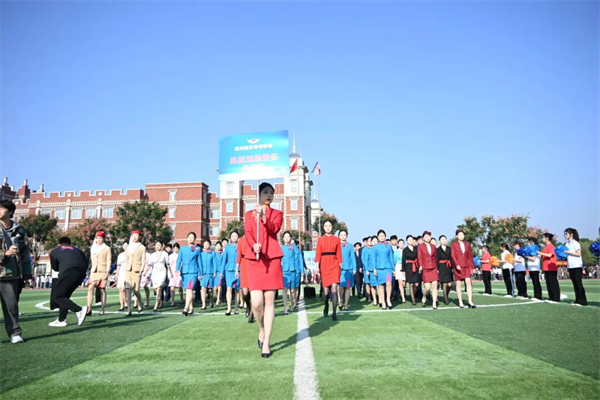 看!迎面走来的是民航管理学院方队。他们身着笔挺的制服,步伐整齐划一,意气风发。作为未来蓝天的守护者与管理者,他们此刻的步伐,踏出的是对规章的敬畏,是对责任的担当🤸🏻♂️。那坚定的眼神、挺拔的身姿🟣,仿佛在向我们宣告☂️:他们不仅能用专业知识翱翔万里航程🔏🤣,也能在赛场上挥洒汗水、一展雄风。他们的口号响彻云霄,他们的信念与梦想,正随着这矫健的步伐🧑🏿🦳,一同起飞🙋🏻♀️!