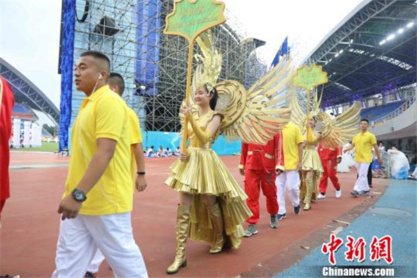 身着“太阳神鸟”服饰亮相的世警会开幕式引导员