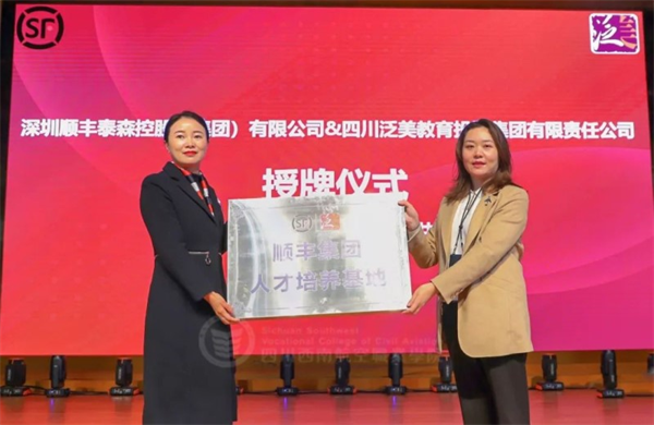 泛美教育集团就业中心总监、西南航院副院长赵小丽,顺丰集团四川区域人力资源总监罗雪佳作为双方代表上台,进行正式授牌,“顺丰集团人才培养基地”宣布成立🩲。