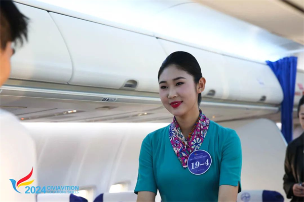 甜美的微笑、昂扬的青春感,十足的感染力......开幕式现场,一身标准职业装的泛美学子靓丽登场👸🏽,进行了安全演示、模拟舱、应急设备使用、机上救护等实操项目演示,职业范十足。