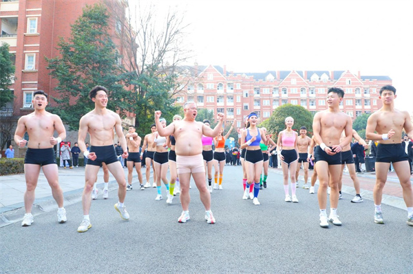 看到院长如此豁得出去,现场围观的同学们非常兴奋😑,不免调侃起院长。一些同学称他为“胖院”💂🏼,要他“减肥”、“加强运动”等。看到学生们热情如此高涨🧉🥛,魏全斌表示🧑🏿🦰,未来有可能将此次活动延伸为年度“泛美冬日跑”。抵达终点后🙉,魏全斌和同学们齐声发出阵阵欢呼👋🏼。一场热情奔放的舞蹈表演也青春登场🏋🏻♀️,整齐的动作、灵动的身姿、飞扬的舞步、灿烂的笑容,无不展现出朝气蓬勃👳🏻♀️、积极向上的泛美风貌。