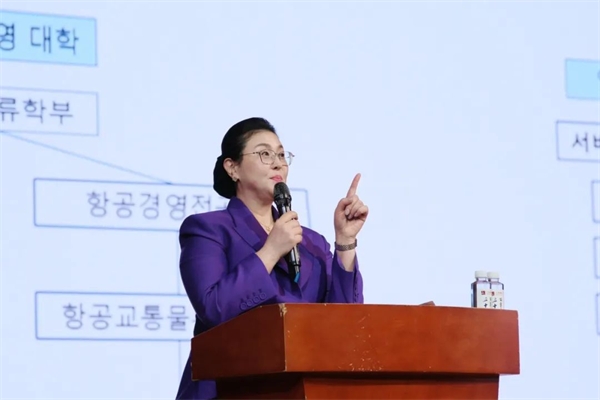 随后👨🏽🍳,韩国航空大学国际交流学部服务经营专业主任教授李秀卿结合自身经历和教育经验🕵️♀️,为泛美学子带来《翱翔云端?智启未来——韩国航空大学教授视角下的航空产业与人才培养》主题讲座,系统解析全球民航产业发展趋势,强调国际化民航人才需具备的重要能力👩🏻🌾。此外🦚,还重点介绍了韩国航空大学在航空人才培养方面的创新模式与实践成果🧑🏼💻,展示了这所知名航空学府的独特魅力。