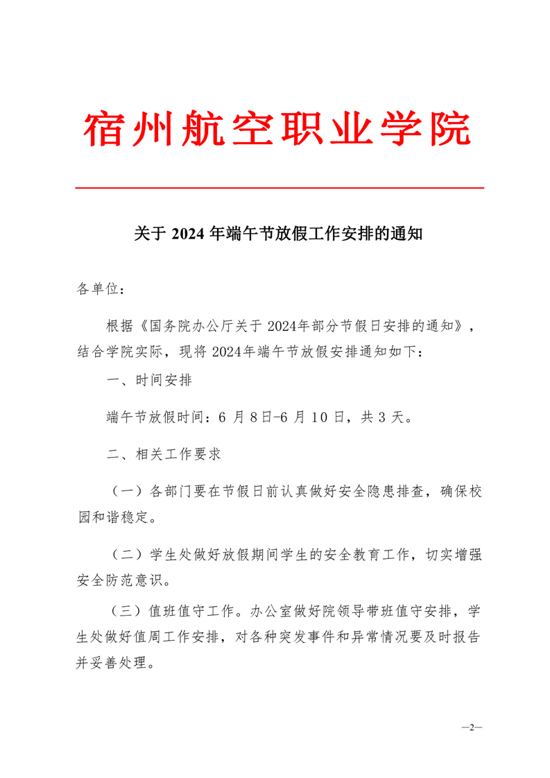关于2024年端午节放假工作安排的通知