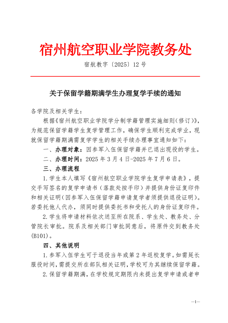 关于保留学籍期满学生办理复学手续的通知